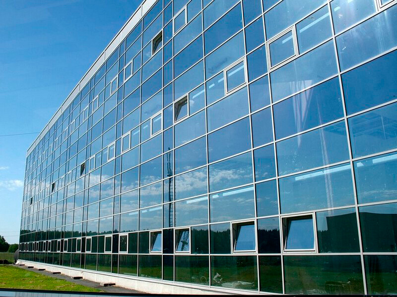 Фасадное остекление здания применяется в строительстве и реконструкции высотных зданий: торгово-развлекательных центрах, бизнес-центров, других зданий, а также для облицовки парадных фасадных систем частных домов. Остекление фасада визуально придаст зданию стильный и престижный вид. Мы предлагаем помимо классического остекления, также фасадное остекление с применением конструкций различных геометрических форм. Стеклянный фасад обладает большой массой, выдерживает сильное ветровое напряжение, на него воздействуют большие температурные перепады. В структуре стеклянного фасада применяют алюминиевый профиль, который легкий и прочный, он не поддается коррозии, а также неуязвим к перепадам температуры.