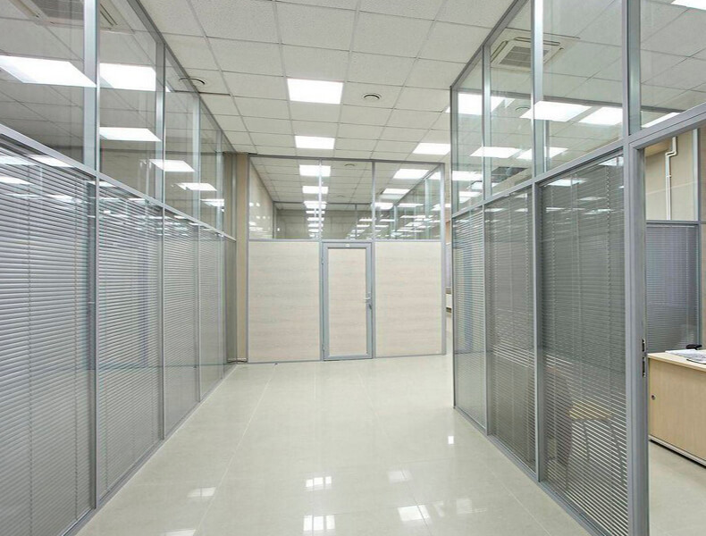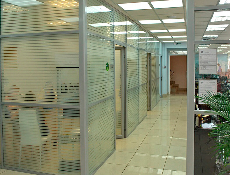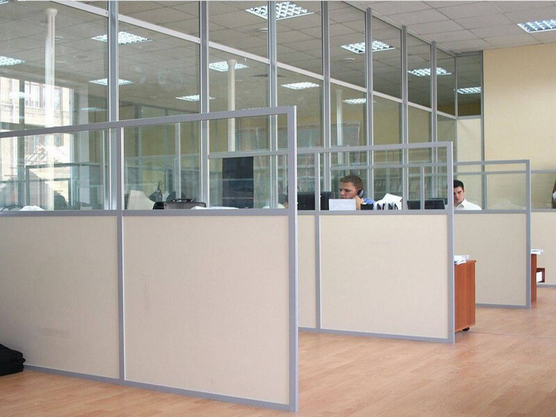Наша компания может предложить офисные алюминиевые перегородки трех основных видов - конструкции база которых состоит из металлического профиля с разнообразным наполнением, цельностеклянная перегородка из закаленного стекла и перегородки из ПВХ профиля.