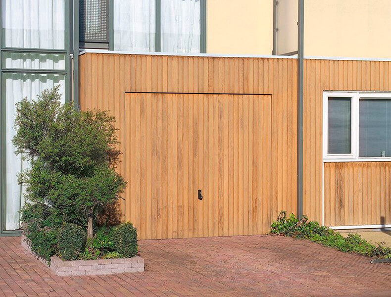 Гаражные секционные ворота Hormann (Хорман). Основной конструкционной частью таких ворот являются секции, которые при открывании поднимаются под потолок гаража. Секции изготовлены из оцинкованной стали, с полимерным покрытием на внешней стороне, а внутри наполнены вспененным полиуретаном. Толщина секций составляет 22мм и 42мм.